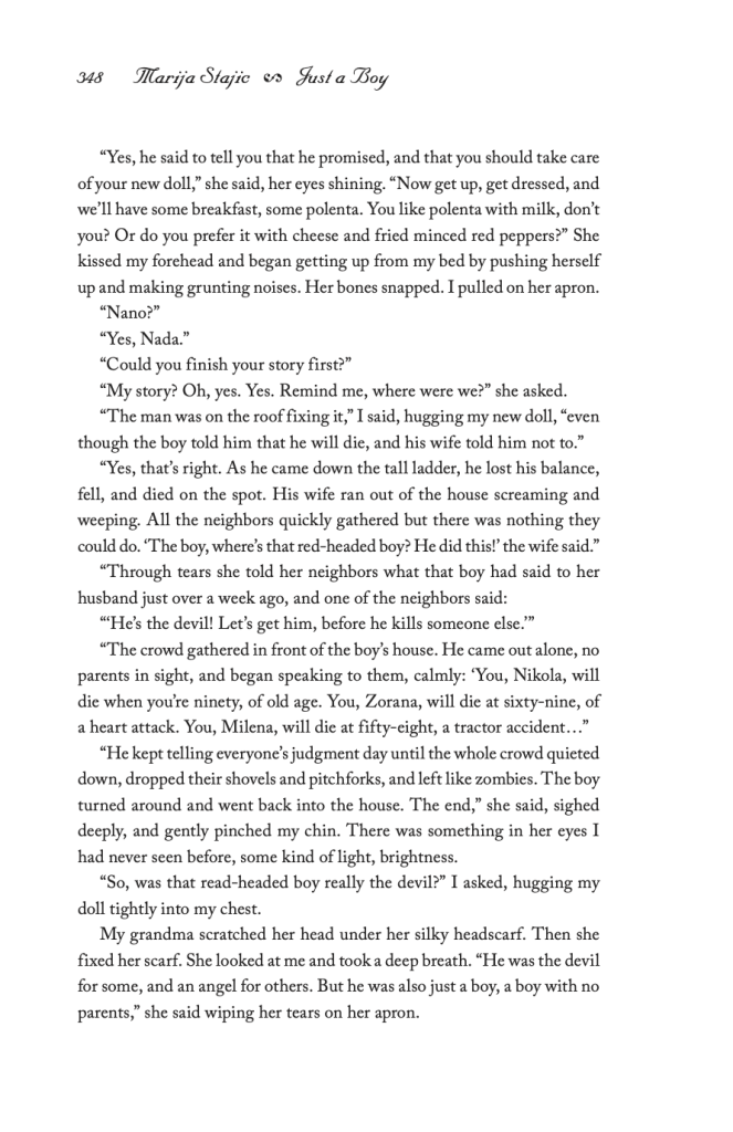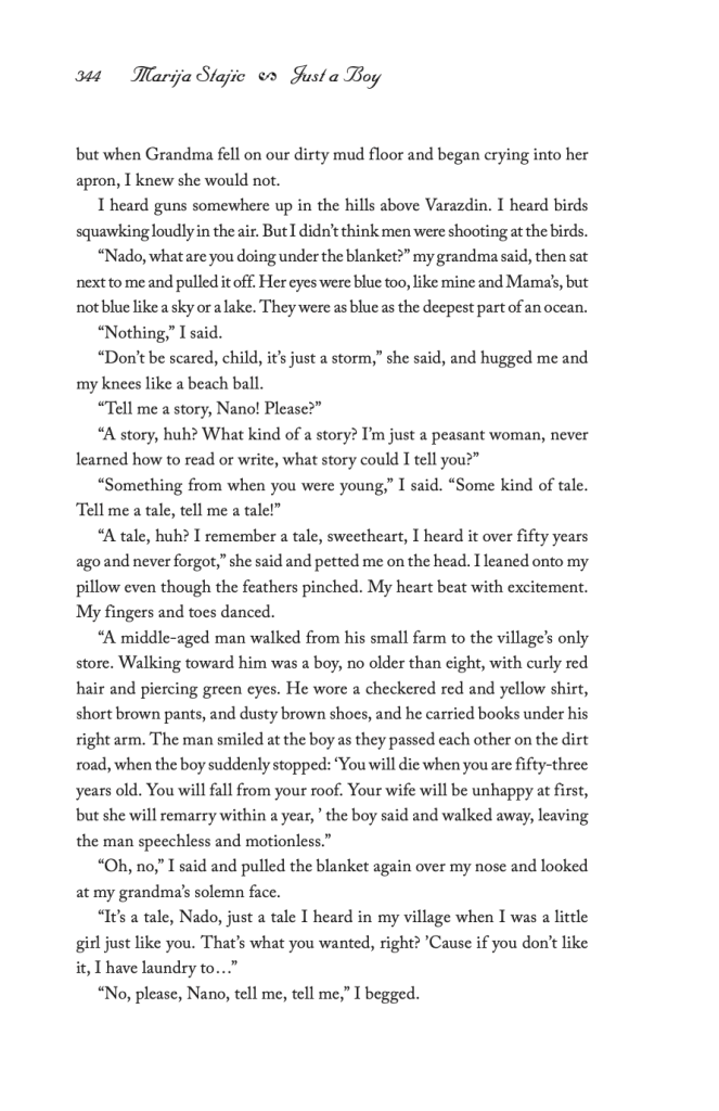 What Stajic has accomplished so far in her literary career is more than most authors could hope to accomplish in twice the time, but what truly astonishes is her ability to overcome the obstacles she faced and turn them into art. Prior to moving to the United States in 2004, Stajic lived in Serbia and had firsthand experience of NATO’s bombardment of the republic in 1999. Despite this, Stajic’s love for language and storytelling then took her overseas, receiving her Master’s of Arts in International Journalism from American University. Still drawn to the realm of fiction, Stajic also studied fiction at George Washington University as well as playwriting at HB Studios in New York City. The time Stajic has spent to cultivate her skills has rightly bore fruit, “Just a Boy” being a great example of how Marija has used her writing craft and lived experiences to create a fictionalized story about a family during WWII.