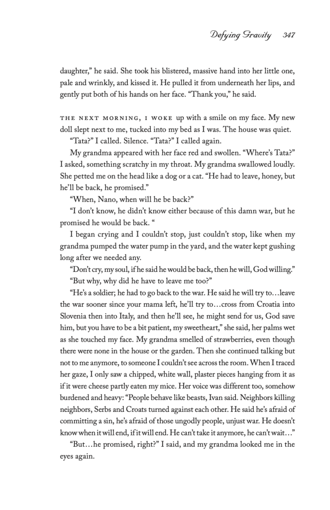 While Stajic obviously never lived through the horrors of WWII, she is able to tell the harrowing events of this fictional family as if she’d been there herself. Like the narrator, Stajic was once unfamiliar with war as a concept, not understanding why it exists yet acutely aware of how it weighs down upon her and those she cares about. Yet, Stajic is also like the grandmother, scared like her younger self but with the experience and craftsmanship to take control of the narrative of her own life experiences while also making it meaningful for others. If people were more like these two characters, frightfully aware of the ugliness of war but wise enough to understand the reality of it, the world would be much better off than it is now with war so easily seen as just a chilling headline in the morning.