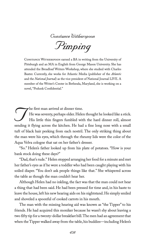 There is a distinct lack of pretension with which Constance Sayers writes Helen, the protagonist of “Pimping”, that makes it an utterly refreshing read. In the first paragraph of the story, Helen compares the blue of a man’s eyes not to the sky or the ocean, but to “the Aqua Velva cologne that sat on her father’s dresser.” This straightforward voice is no accident; the story later reveals that Helen is a failed poet who was intimidated into quitting after deciding that her poetry, concerning things like “her childhood in Pittsburgh and the importance of a Boz Scaggs tape” was too quaint for her to be a real poet. Yet, Sayers makes sure not to condescend towards Helen. She recognizes that her protagonist is intelligent and well-educated and does not make any attempt to try to write her as a small-town hick. It makes sense; Sayers herself comes from Brookville, Pennsylvania and earned her Bachelor of Arts from the University of Pittsburgh, where both “Pimping” and her other story, “Tending,” is set. The protagonist of her 2016 story, “Tennessee”, comes from Cleveland, Ohio. She would be familiar enough with the people of blue collar neighborhoods to give them proper respect.