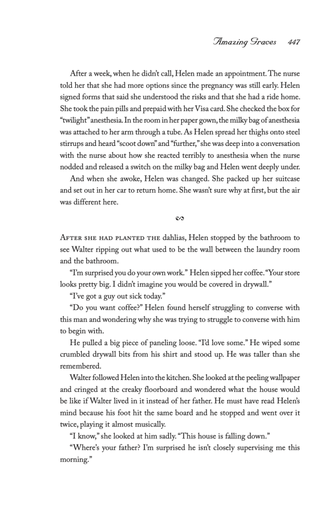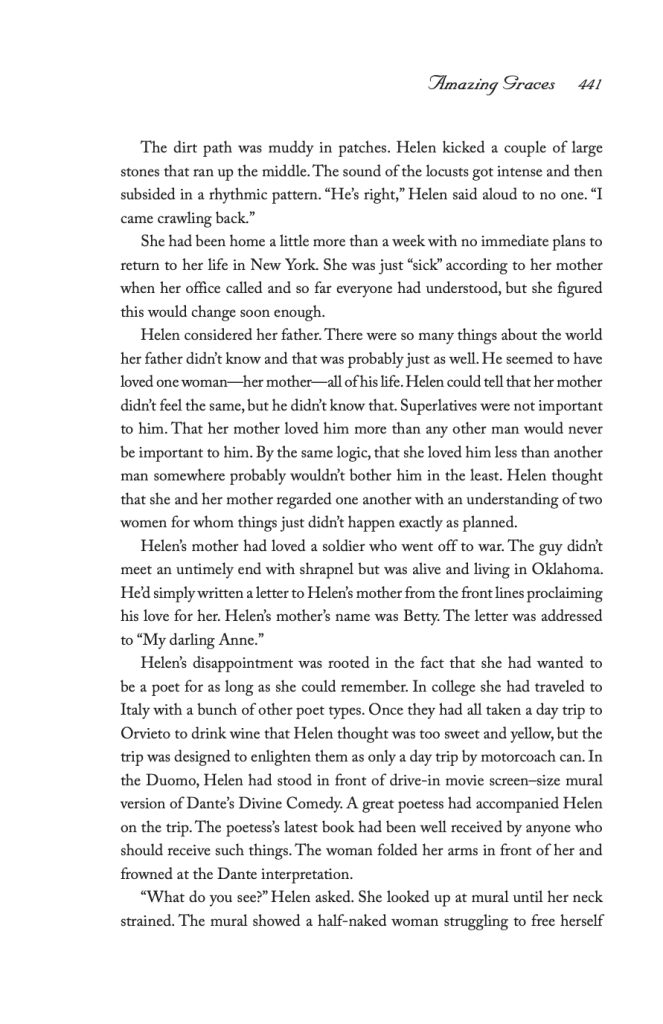 The aforementioned lack of pretension, the focus on the small, is what makes Helen and her story feel so real. At one point, while avoiding one of her “suitors”, Helen returns to her childhood and goes through old love notes that she keeps in a cream vinyl box under her bed. She reads one, whose writer describes how “he loved her more than a Camaro, he loved her more than basketball, and he loved more than Led Zeppelin.” The specificity and realism of this note makes it feel all the more personal. There is also a sense of real melancholy to this scene; Helen has fled what she does not yet know is an attempt by her old-fashioned father to set her up with a man to whom she is not attracted based on the idea that no one will ever want to marry her now that she has had an abortion. She remarks as she reads the note that “this might have been the simplest, most passionate letter of love a guy like him ever composed.” The reader gets the sense that, perhaps, Helen feels that this simple note will also be the most romantic love letter that she will ever receive.