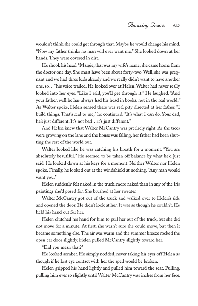 That is why Helen’s final conversation with Walter McCantry feels like such a relief after Helen constantly feeling like her milquetoast existence is as good as life will ever get for someone like her. The scene of Helen reading the notes, coupled with her recollection of her perceived failure as a poet, her relationship with Luc, and her description of herself and her mother as “two women for whom things just didn’t happen exactly as planned”, gives the sense of Helen as a person for whom life has no more exciting things to offer. It reminds Helen, and the reader, that there is always room for things to get better and that one, or even two or three, bad experiences does not render a person completely hopeless.