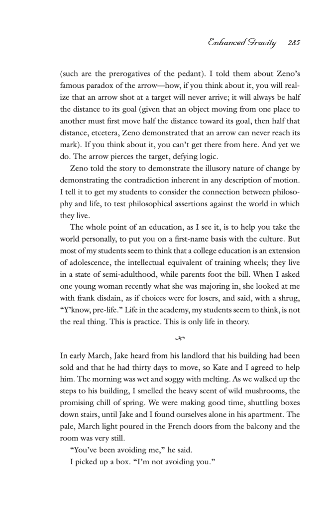 Though this story was published while Levy was a professor, she says it was written while she was a graduate student. “I was dating scholars and was interested in how the pleasures of the intellect and scholarship might relate to life, to love, to our bodied experience of our humanness,” Levy said, adding that she had a particular interest in how “lived experience measured up to our ideas about [school], and to consider how theories might guide and maybe mislead us.” Her work stands out among other stories of academia because of the through line: desire. Levy grounds the theories and philosophies with a feeling that unites us and does so in an exciting and unexpected way. There’s catharsis in the desire that the narrator experiences, even if it’s misguided.