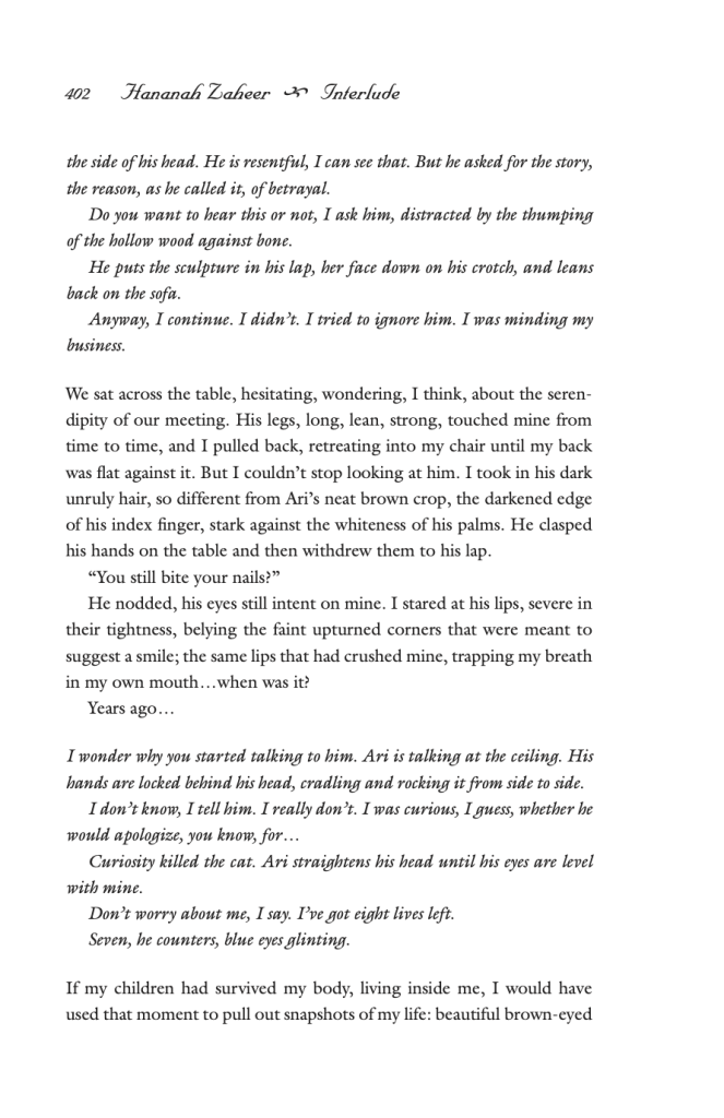 In Interlude, the main character, Maya has a “fuck you moment” against her controlling and toxic husband, Ari. The story opens with a chance encounter, an old flame back in town runs into Maya as she is getting coffee for herself and Ari. The story is told through interwoven flashback, flash forward, and the events of this encounter, allowing the reader to savor every moment of pain, regret, and anger as well as every delicious second of desire, hope, and lust. In the end, the reader gets to see Maya struggle with the doubts and the regrets of what could have been and reclaim her power.